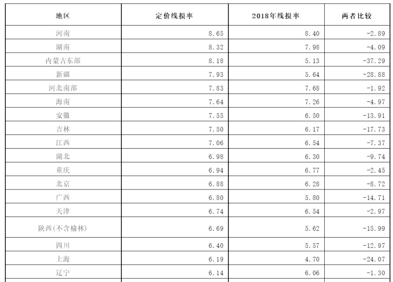 定價線損率中,河南、湖南、蒙東最高,超過8%;青海、寧夏最低,低于4%。按照1000億千瓦時的用電量計算,河南與寧夏定價線損率折算的線損電量相差40億千瓦時,對用戶而言是一筆龐大的“低效”支出。