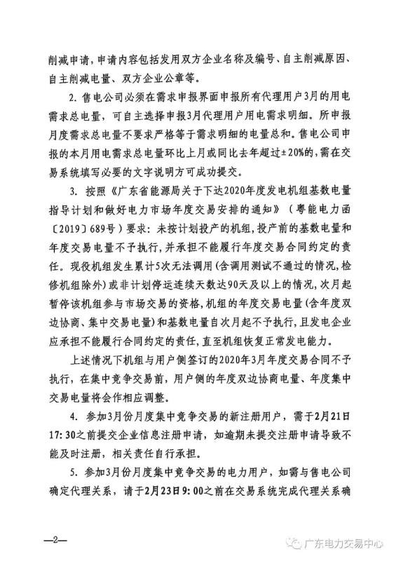 對于用電側(cè)申報(bào)需求小于年度合同電量的情況,經(jīng)發(fā)用雙方協(xié)商一致,可在需求調(diào)查截止前對雙方年度合同電量申請自主削減,并于2月23日10:00前,通過廣東電力交易中心郵箱gddljyzz@163.com提交自主削減申請,詳情見通知正文如下。