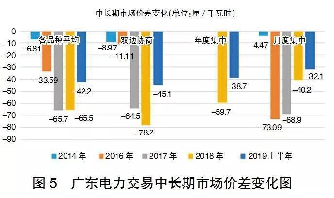 2016年雙邊協(xié)商市場(chǎng)延續(xù)直購(gòu)電行情,平均價(jià)差僅為-11.11厘/千瓦時(shí);售電公司進(jìn)場(chǎng)后,市場(chǎng)競(jìng)爭(zhēng)進(jìn)一步盤(pán)活,受規(guī)則設(shè)置和交易策略尚未成熟影響,開(kāi)始一度讓利都在-100厘/千瓦時(shí)以上,后期調(diào)整后才收窄到-40厘/千瓦時(shí)以內(nèi),最終全年平均價(jià)差為-33.59厘/千瓦時(shí)。