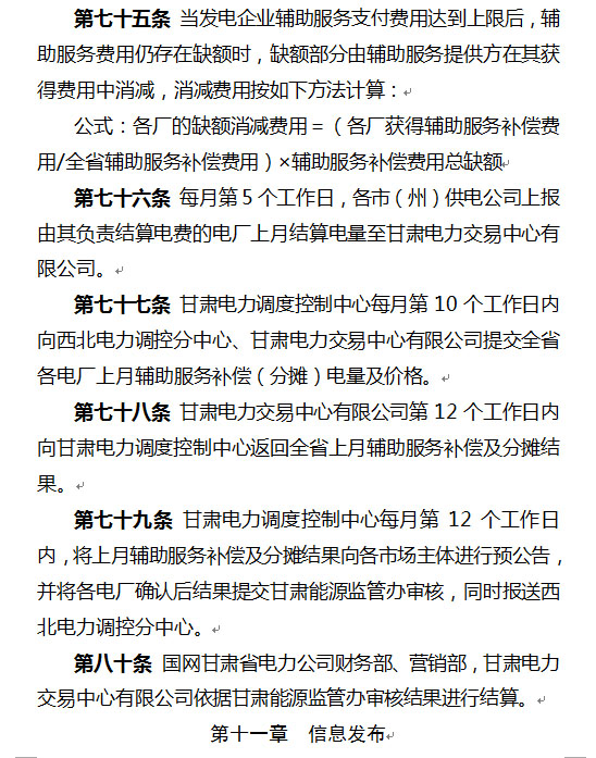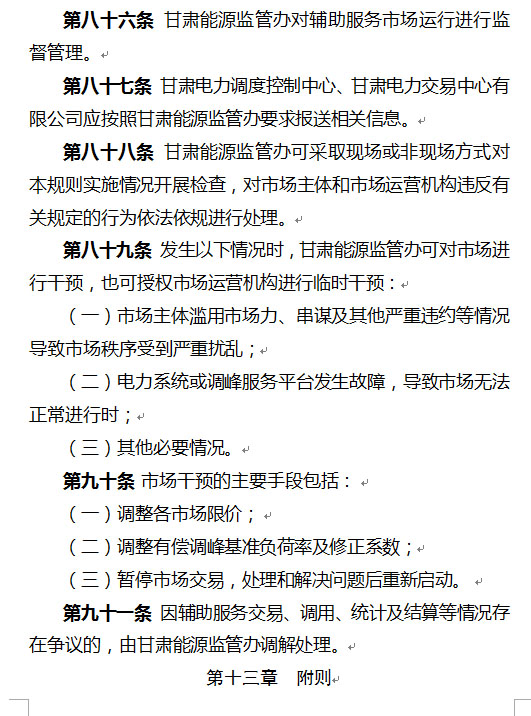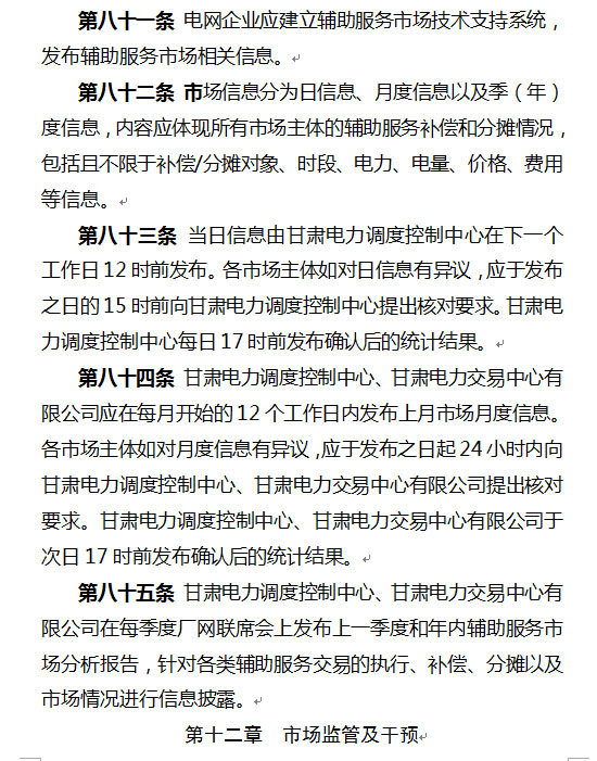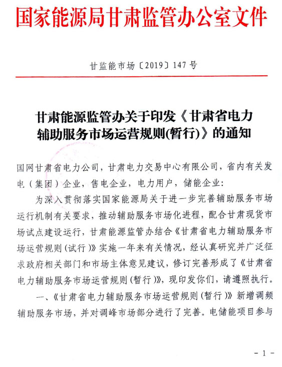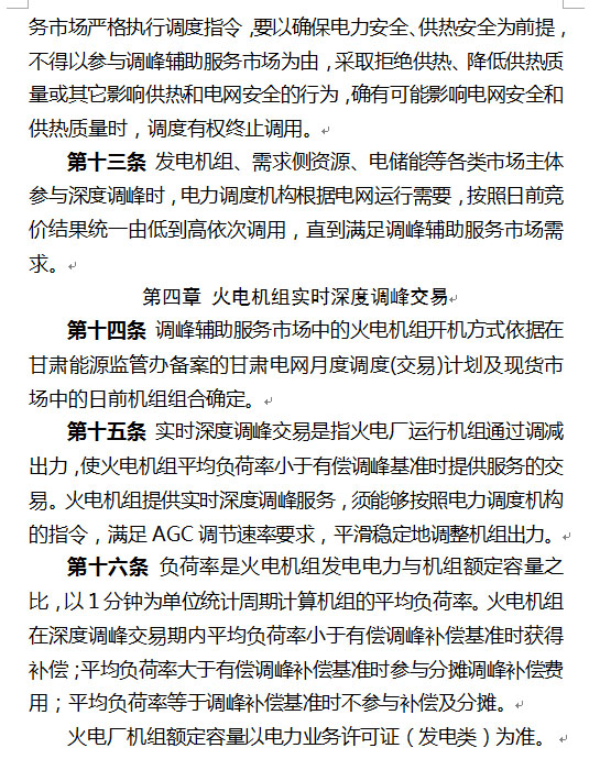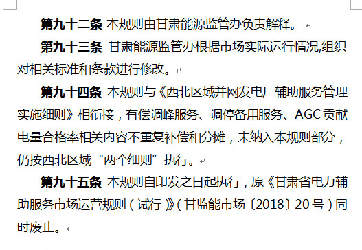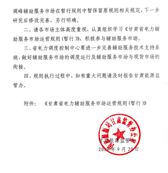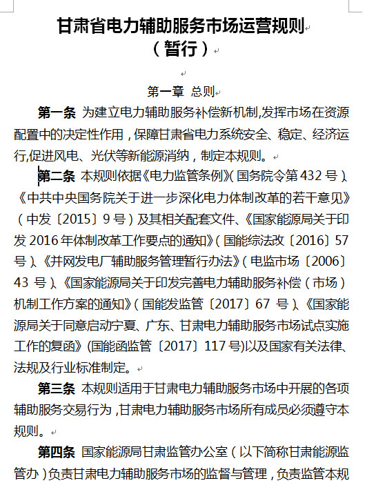 以下是《通知》及《甘肅省電力輔助服務(wù)市場(chǎng)運(yùn)營(yíng)規(guī)則(暫行)》: