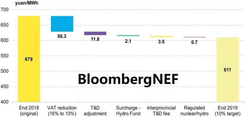政策:2019年3月,國務(wù)院總理李克強在作政府工作報告時指出,一般工商業(yè)平均電價將再降低10%。本輪降價是2018年電價下調(diào)以來的第二次降價。(2018年電價下調(diào)的詳細信息,請見BNEF上一年度的相關(guān)報告。)
