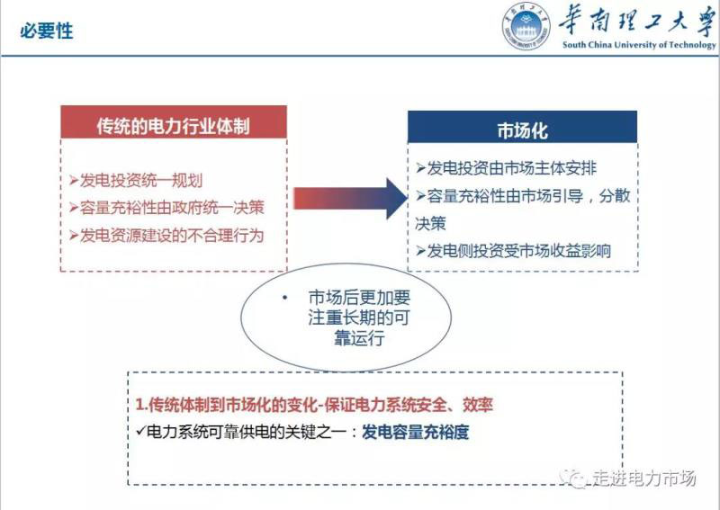 我們?yōu)槭裁从懻撨@個(gè)問題?其實(shí)是因?yàn)榻ㄊ袌龊笫切枰ゼ?lì)長期可靠運(yùn)行,昨天我們也討論過這個(gè)問題,大部分用戶將停電損失放到第一位,他們甚至認(rèn)為節(jié)約一點(diǎn)用電成本對(duì)他們來說并不是最主要的關(guān)注的問題,更想要的是穩(wěn)定的供電,理想的情況下按照市場來說它是可以通過市場的方式,這只無形的手,去激勵(lì)發(fā)電商投資保證供需平衡。