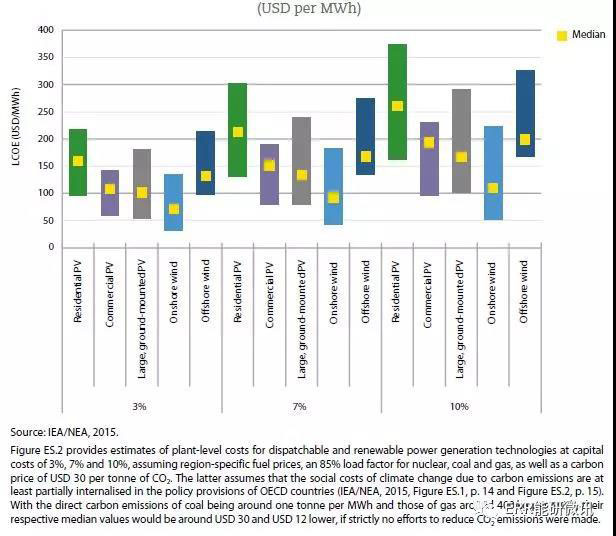?預(yù)計(jì)發(fā)電成本:2015年更新(2015年),與國際能源署。