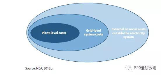 目前,能源供應(yīng)的全部成本包括3類成本:發(fā)電廠級(jí)成本、電網(wǎng)級(jí)系統(tǒng)成本和外部社會(huì)和環(huán)境成本(見圖ES.1)。