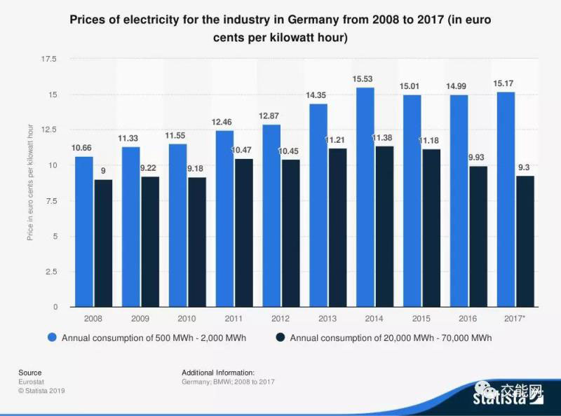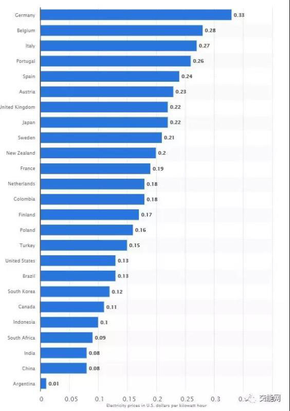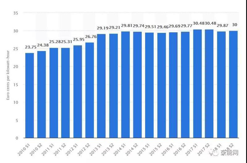 2018年德國民用電平均電價為0.3歐元每千瓦時,在歐盟僅次于丹麥的0.31歐元每千瓦時位居第二,甚至在全球電價最高的國家名單中名列前茅。