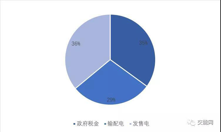 自2010年以來,2018年英國民用電價格上漲46%,達到每千瓦時0.202歐元,與歐盟平均0.21歐元每千瓦時的民用電價在同一水平。這主要是由于相對較低的稅費補貼,使得英國民用電價格偏低,在下圖的電價組成中增值稅占電價總額的4.76%,環(huán)保和氣候變化補貼占17.45%。這與法國稅費補貼36%的比例,以及德國的49%相比,都相當?shù)汀?