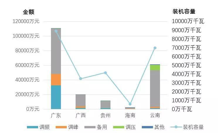 注:廣東調(diào)頻輔助服務(wù)市場(chǎng)于2018年9月1日啟動(dòng)試運(yùn)行并開(kāi)始結(jié)算,4個(gè)月合計(jì)補(bǔ)償2.35億元,圖中未含該部分費(fèi)用。