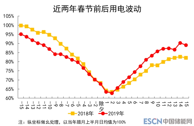 首先,從農(nóng)歷同期對(duì)比看,2019年春節(jié)前后(臘月十五至正月十五)全國(guó)全口徑發(fā)電量同比增長(zhǎng)5.8%;春節(jié)假期(除夕至正月初六)同比增長(zhǎng)8.2%,增速同比提高1.4個(gè)百分點(diǎn)。其次,據(jù)國(guó)家電網(wǎng)有限公司電力供需研究實(shí)驗(yàn)室測(cè)算,剔除春節(jié)因素影響后,1-2月全國(guó)全社會(huì)用電量同比增長(zhǎng)5.4%,較剔除前的4.5%提高0.9個(gè)百分點(diǎn)。總體上,年初用電增長(zhǎng)并非“斷崖式”下跌,而是在較高基數(shù)上實(shí)現(xiàn)了較快增長(zhǎng),反映出經(jīng)濟(jì)運(yùn)行總體平穩(wěn)的良好態(tài)勢(shì)。