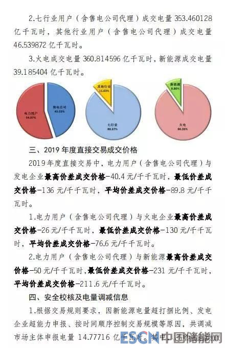 2019年度直接交易中,電力用戶(含售電公司代理)與發(fā)電企業(yè)最高價(jià)差成交價(jià)格-40.4元/千千瓦時(shí),最低價(jià)差成交價(jià)格-136元/千千瓦時(shí),平均價(jià)差成交價(jià)格-89.8元/千千瓦時(shí)。
