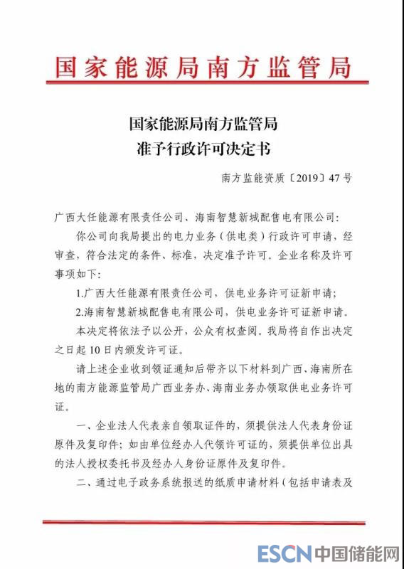 南方兩企業(yè)獲供電業(yè)務許可證:廣西大任、海南智慧新城