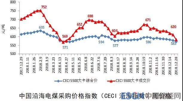 七是電力燃料供需總體平衡,地區(qū)性時(shí)段性偏緊,煤電企業(yè)經(jīng)營仍比較困難。反映電煤采購成本的CECI 5500大卡綜合價(jià)波動(dòng)區(qū)間為571-635元/噸,各期價(jià)格均超過國家發(fā)展改革委等《關(guān)于印發(fā)平抑煤炭市場(chǎng)價(jià)格異常波動(dòng)的備忘錄的通知》(發(fā)改運(yùn)行〔2016〕2808號(hào))規(guī)定的綠色區(qū)間(價(jià)格正常)上限,國內(nèi)煤電企業(yè)采購成本居高不下。2018年全年全國火電企業(yè)虧損面仍近50%。