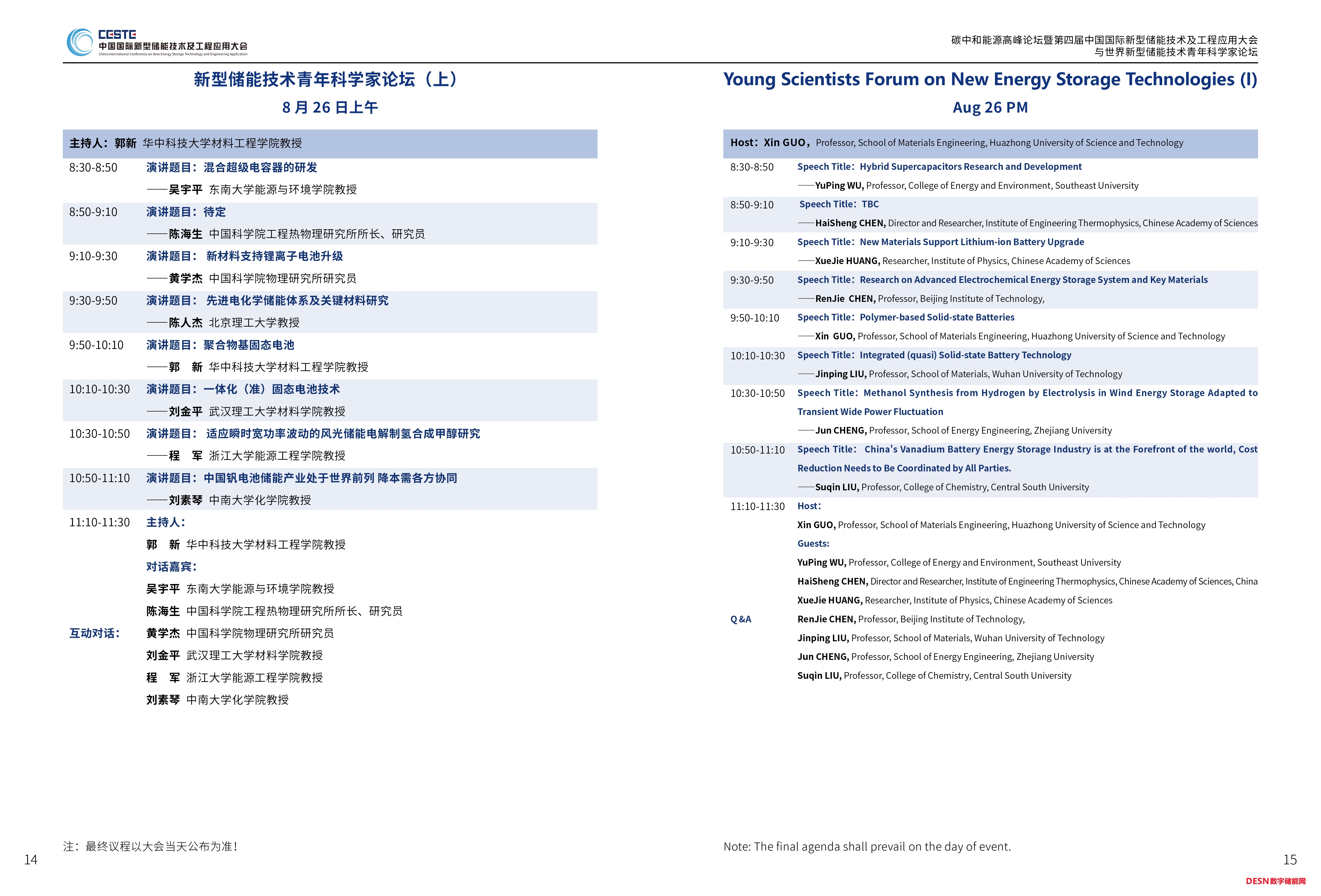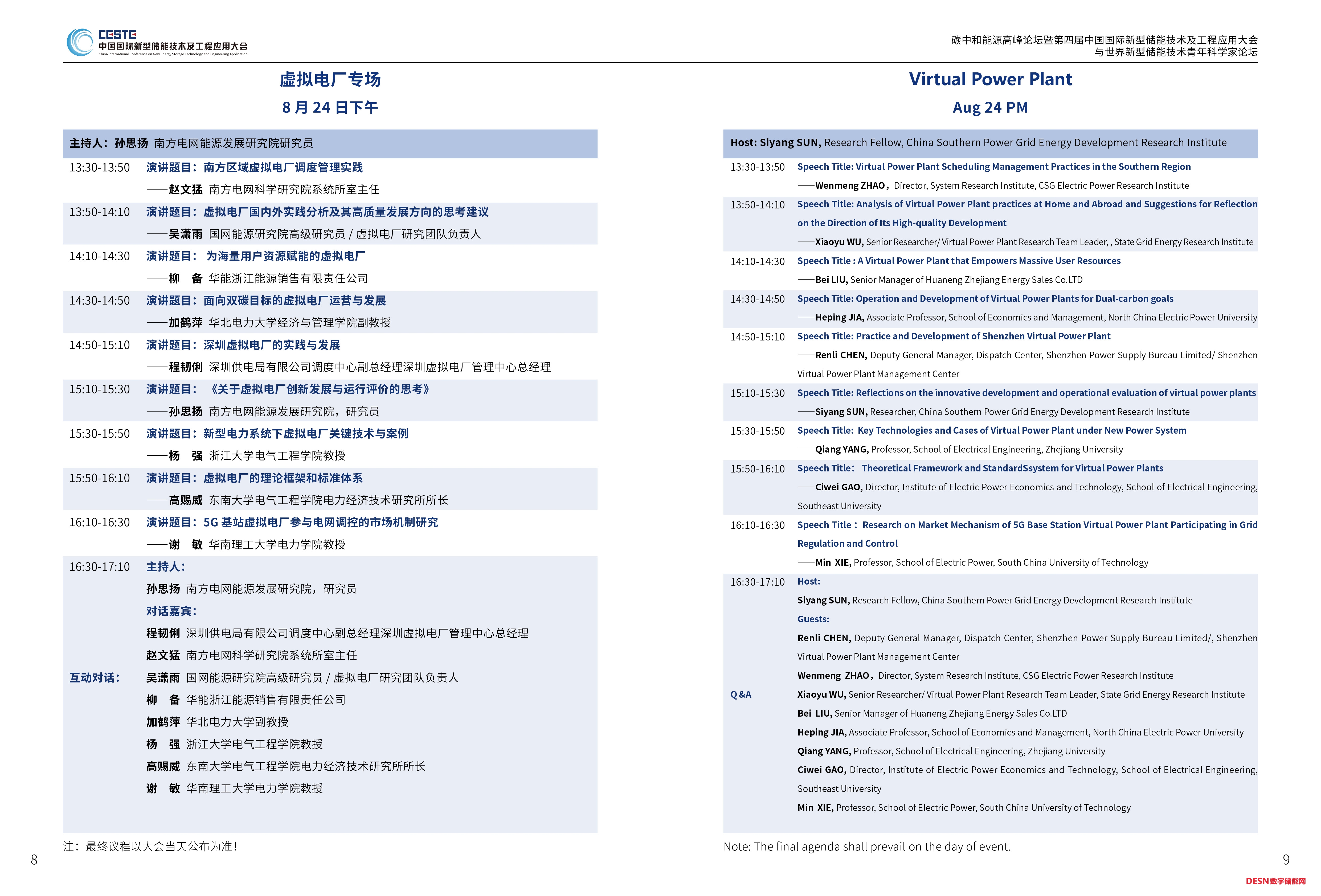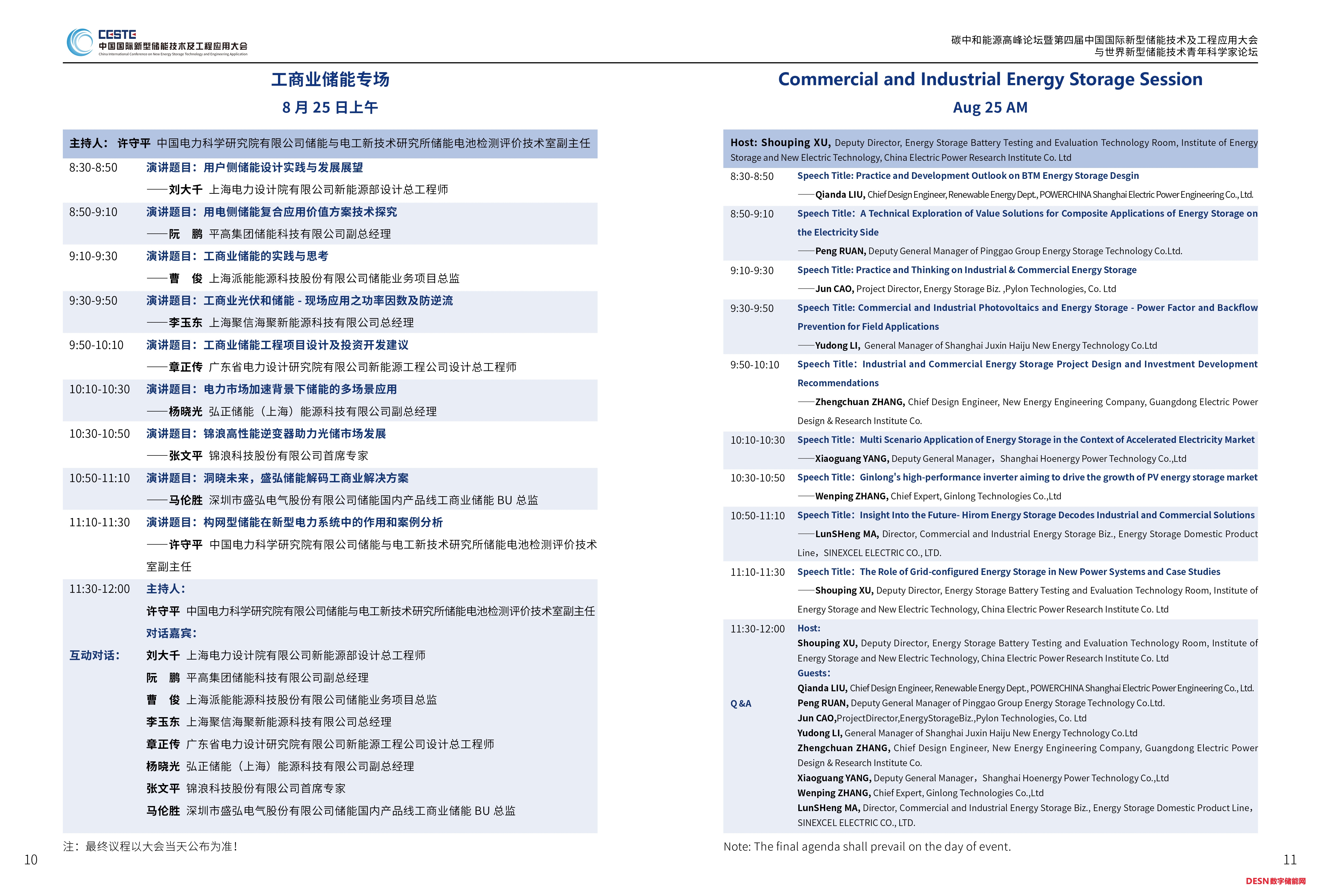 本屆大會安排碳中和能源高峰論壇暨特邀院士報告專場、新型儲能系統(tǒng)集成解決方案、長時儲能技術(shù)及應(yīng)用、虛擬電廠、工商業(yè)儲能專場、新型儲能電池、新型儲能與電力市場、新型儲能資本與知識產(chǎn)權(quán)、智能微電網(wǎng)、儲能標準宣貫、新型儲能技術(shù)青年科學家論壇(上、下)等12個專場。以下發(fā)布其中六個專場議程。