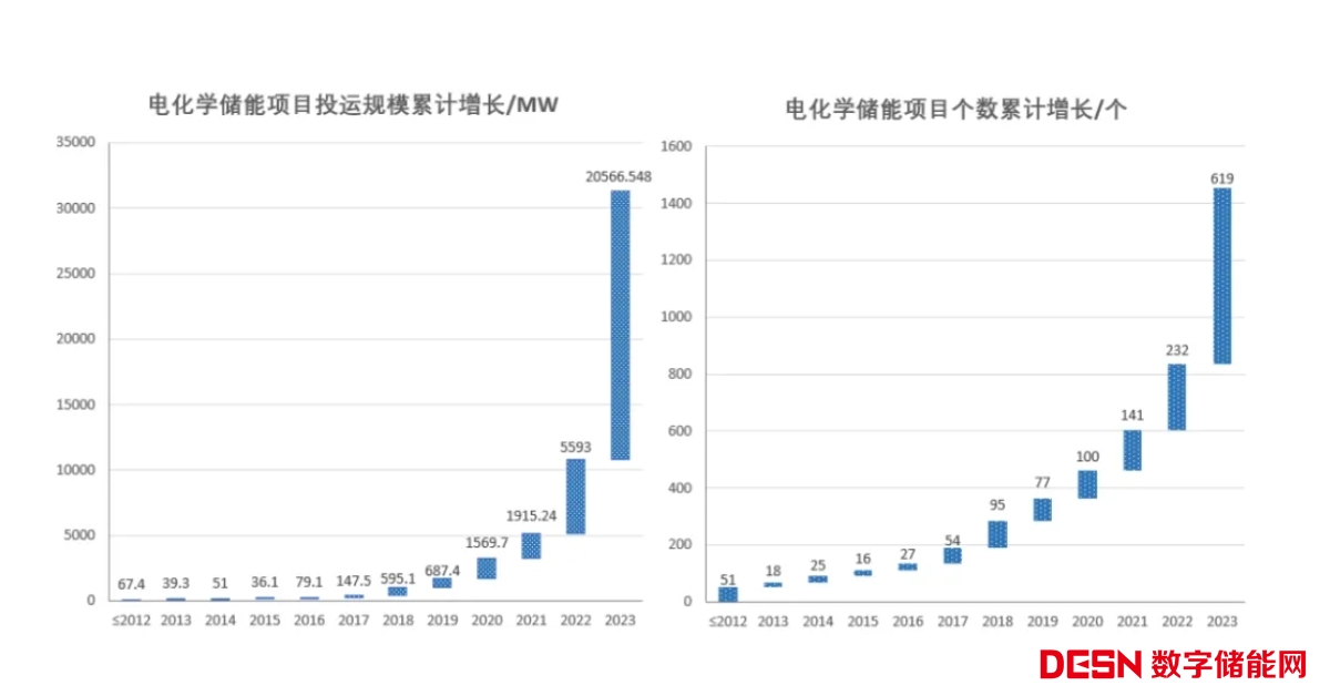 圖1 我國電化學(xué)儲能項目歷年投運規(guī)模及數(shù)量增長情況