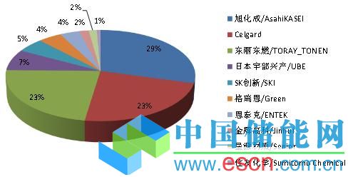 2008年全球前四大企業(yè)分別為日本旭化成、美國(guó)Celgard、日本東麗東燃、日本宇部興產(chǎn),占據(jù)82.8%的市場(chǎng)份額。隨著國(guó)內(nèi)廠商不斷加大研發(fā)和投資力度,新增產(chǎn)能投入運(yùn)行,出貨量迅速增加,星源材質(zhì)、佛山金輝高科、中科科技等大陸廠商實(shí)現(xiàn)隔膜產(chǎn)業(yè)化,其中星源材質(zhì)已經(jīng)與韓國(guó)LG化學(xué)、三星SDI、ATL、法國(guó)SAFT、松下能源、日本AESC等國(guó)際知名鋰離子電池生產(chǎn)廠商開(kāi)展深入合作,開(kāi)始搶占全球市場(chǎng)份額。