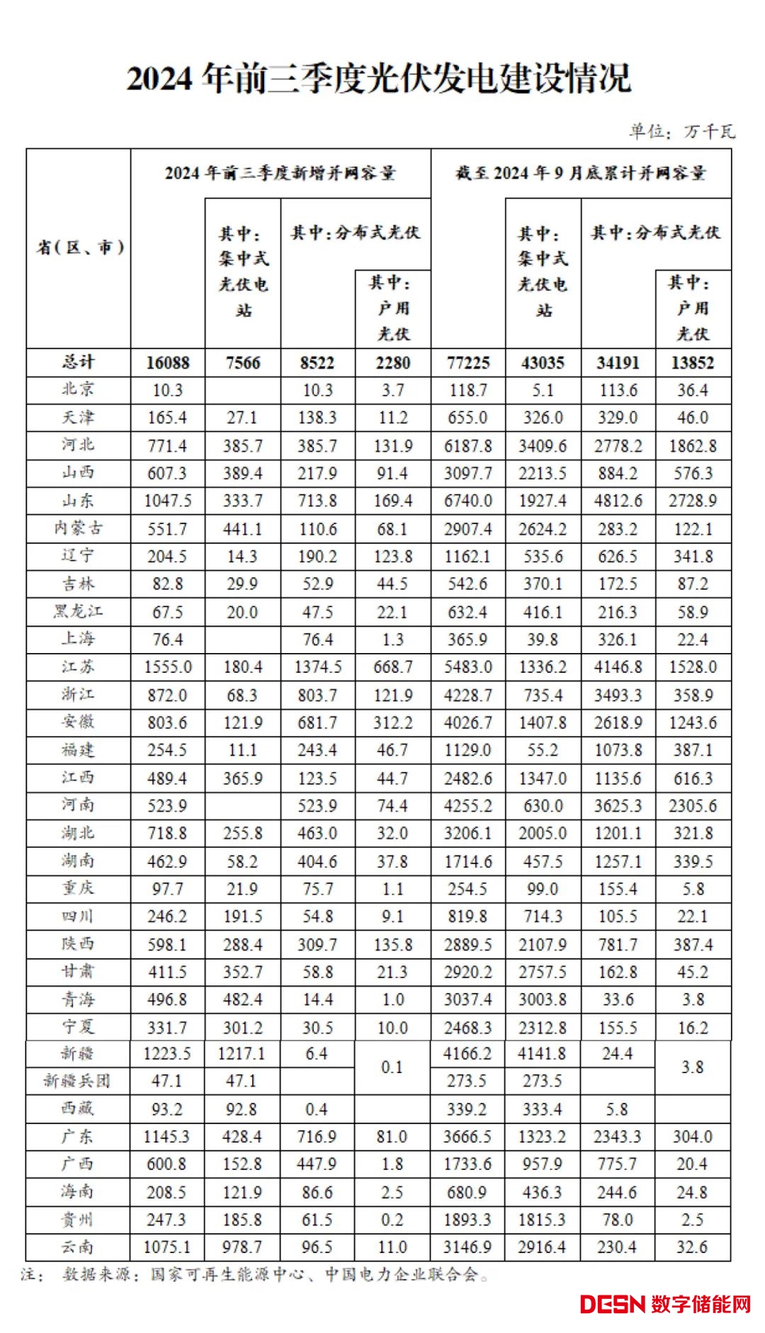 2024年前三季度光伏發(fā)電建設(shè)情況