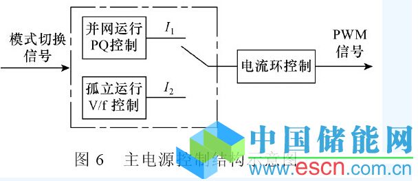 如采用圖6 所示控制結(jié)構(gòu),在切換前后,兩種控制模式中使用相同的電流內(nèi)環(huán),模式切換時僅對外環(huán)控制器進(jìn)行切換。在模式切換中,采用合理的補(bǔ)償控制算法和切換控制邏輯,可有效降低模式切換過程中的暫態(tài)沖擊[36]。