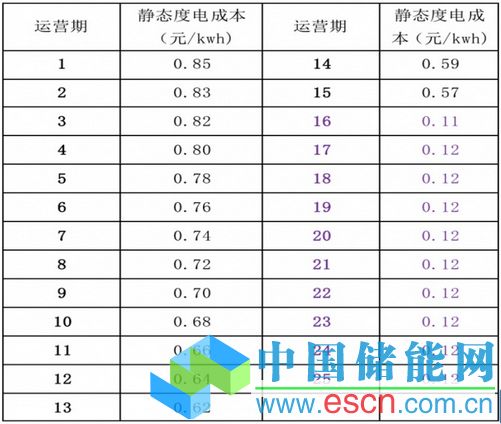 項目的靜態(tài)度電成本:C=[(O+M)+T+S]/N計算各年的度電成本: