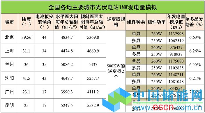據(jù)上分析,我們可得出1MWp單多晶光伏電站在國內(nèi)各地區(qū)發(fā)電量差異分析: