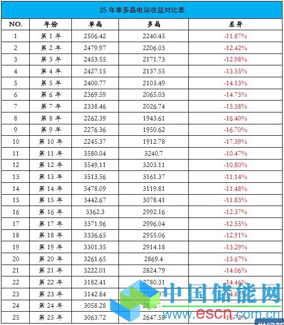 25年單多晶電站收益對比表
