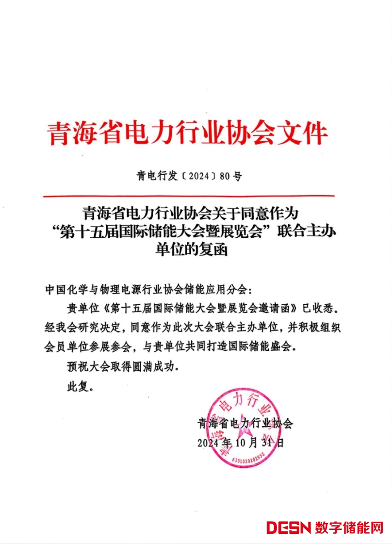 中國儲能網(wǎng)訊:近日,青海省電力行業(yè)協(xié)會復(fù)函中國化學(xué)與物理電源行業(yè)協(xié)會儲能應(yīng)用分會,同意作為第十五屆中國國際儲能大會暨展覽會(CIES2025)聯(lián)合主辦單位,并積極組織會員單位參展參會,與中國化學(xué)與物理電源行業(yè)協(xié)會儲能應(yīng)用分會共同打造這場國際儲能盛會。