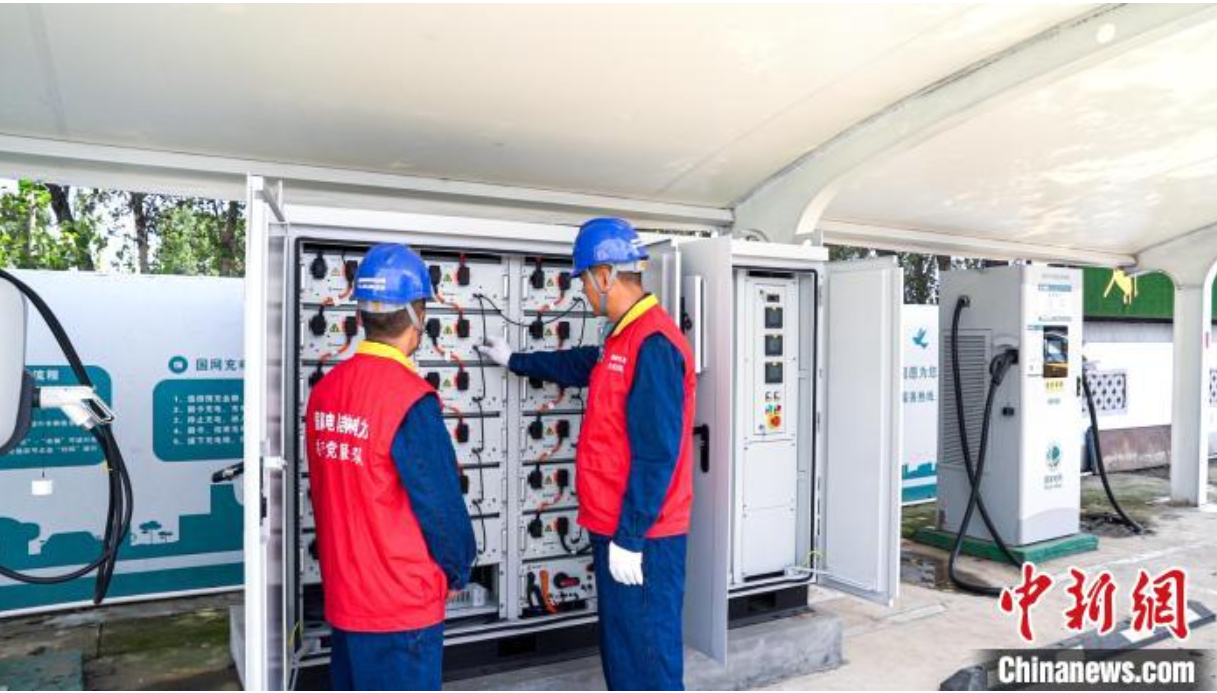 9月5日,國網(wǎng)四平供電公司員工在調(diào)試檢查光儲微電網(wǎng)儲能箱和配套設(shè)施。劉宏宇 攝