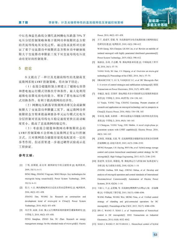 李妍, 王展, 黃迅, 等. 計(jì)及光儲(chǔ)荷特性的直流微網(wǎng)低壓穿越控制策略[J]. 中國(guó)電力, 2019, 52(7): 47-54.