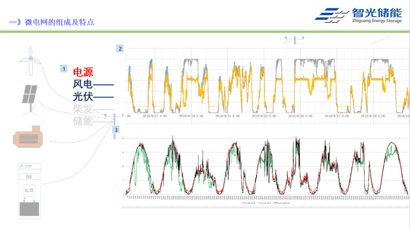 郭威:各位來賓、各位朋友,大家下午好!我是智光儲能的郭威,今天跟大家分享一下智光儲能參與的微電網設計的一些項目經驗。今天這個題目比較大,里面的關鍵技術也很多,我下面重點從微電網設計的安全、可靠性和系統(tǒng)可用容量及效率等幾個方面進行闡述。主要包括四個部分:微電網的組成——微電網的組成不同的廠家、不同的人有不同的理解,我講一下我們對微電網的理解。二是微電網設計的要點和關鍵技術以及智光在這塊的研究,最后簡單介紹一下廣州智光儲能科技有限公司。