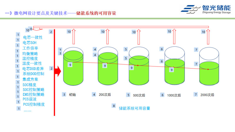 儲能綜合效率是以交流電網并網點為卡口進行評估,儲能系統(tǒng)的綜合效率應該是實際放電量減控制損耗、減散熱保溫損耗、再除以實際充電量的。充電開始算起,圖中是充電可用率、放電可用率、能量轉換效率和系統(tǒng)損耗的四個個定義,這是我們微電網在做儲能選型和設計都應該密切關注和為客戶考慮的。
