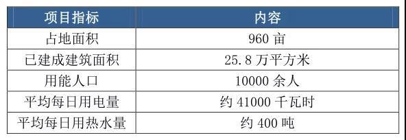 作為公用事業(yè)單位,學(xué)校具有用能需求穩(wěn)定、投資風(fēng)險低的特點(diǎn),用能需求主要為電、熱水、冷、熱、氣。其中,用冷和供暖需求在學(xué)校工程建設(shè)中已同時建設(shè)了中央空調(diào)(制冷熱式),因此該項目設(shè)計時主要滿足學(xué)校用電和用熱水的需求。截至目前,上海電力大學(xué)臨港新校區(qū)全日制在校生10000余人,占地面積960畝,總的用電負(fù)荷約為7753千瓦,用熱水負(fù)荷為2315千瓦(按空氣源熱泵電功率折算),具體見下表。