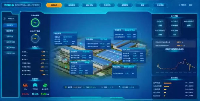 TEMSμ能量管理系統(tǒng)通過智能終端實現(xiàn)電網(wǎng)、光伏發(fā)電、負荷與儲能等環(huán)節(jié)的全景感知,全面監(jiān)測園區(qū)的發(fā)、用電情況;同時通過氣象數(shù)據(jù)與歷史數(shù)據(jù)精準預(yù)測光伏發(fā)電情況和負荷用能計劃,再通過儲能系統(tǒng)精確的充放電控制,最終實現(xiàn)園區(qū)源網(wǎng)荷儲協(xié)調(diào)控制,智能優(yōu)化調(diào)度園區(qū)用能,為工業(yè)園區(qū)生產(chǎn)、辦公和生活提供高可靠、低成本供電服務(wù)。