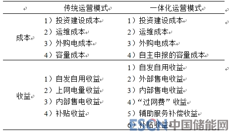 一體化運(yùn)營模式成本包括投資建設(shè)成本、運(yùn)維成本、外購電成本以及自主申報(bào)的容量成本,收益包括自發(fā)自用收益、外部售電收益、內(nèi)部售電收益、“過網(wǎng)費(fèi)”收益、輔助服務(wù)補(bǔ)償收益和補(bǔ)貼收益。