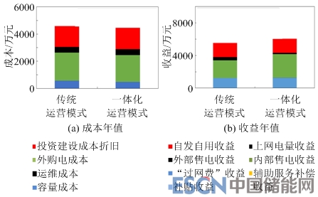圖11兩種運(yùn)營模式下微網(wǎng)的成本/收益年值