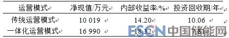 表1傳統(tǒng)運(yùn)營模式和一體化運(yùn)營模式的成本收益