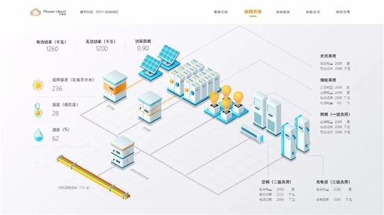 該項目由杭州中恒云能源互聯(lián)網技術有限公司(以下簡稱“中恒云能源”)設計、承建,于2017年12月底建設完成。項目由608kW分布式光伏,250kW/300kWh鉛炭電池儲能系統(tǒng),134kW交直流充電樁,約400kW園區(qū)空調、照明等負荷以及由中恒云能源自主研發(fā)的微電網云平臺和能量管理系統(tǒng)組成。