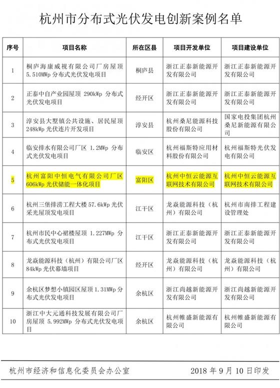 中國儲能網訊:2018年9月份,杭州市經濟和信息化委員會、杭州市發(fā)展和改革委員會公布2018年杭州市分布式光伏發(fā)電創(chuàng)新案例名單,杭州富陽中恒電氣有限公司廠區(qū)606kWp光伏儲能一體化項目憑借在光伏發(fā)電領域的獨特性和創(chuàng)新性成功入選。