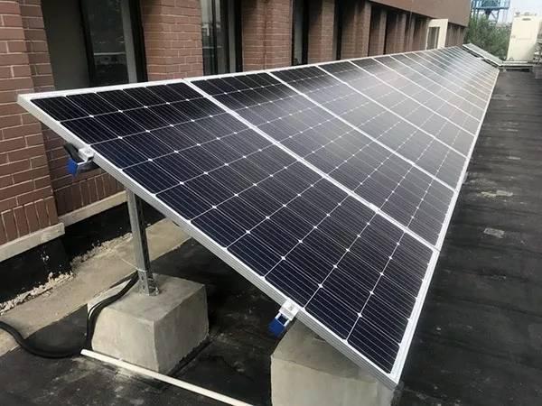 光:實(shí)驗(yàn)室樓頂1路50kW光伏發(fā)電系統(tǒng)(下圖);