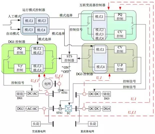本文以主從控制結(jié)構(gòu)的交直流混合微電網(wǎng)為例,對多種運行方式之間的切換控制策略進行研究。本文的主要貢獻如下: