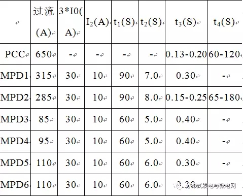 保護(hù)設(shè)備MPD的主要保護(hù)設(shè)定有: