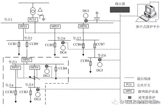 圖4 微電網(wǎng)系統(tǒng)集中式保護(hù)方案