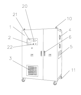 本發(fā)明公開了一種智能建筑微電網(wǎng)的容量配置設備,其結構包括柜體、容量控制器、散熱柵、電抗器、雙向變流器、把手,柜體的上方固定焊接有連接孔,柜體的下方活動連接有滾輪,容量控制器通過電連接于柜體的表面,雙向變流器由匯流器、控制器、光伏陣列、扶手,匯流器固定連接于雙向變流器的后方,控制器通過電連接于雙向變流器的表面,雙向變流器固定連接于柜體的右部,雙向變流器通過電與容量控制器相連接,把手垂直焊接于柜體的表面。本發(fā)明可以將微電網(wǎng)多余的電能通過雙向變流器回饋回電網(wǎng),不僅避免了電能的浪費,也避免了在發(fā)電功率突變時,對電網(wǎng)產生的沖擊,有效提高了設備的安全性能。