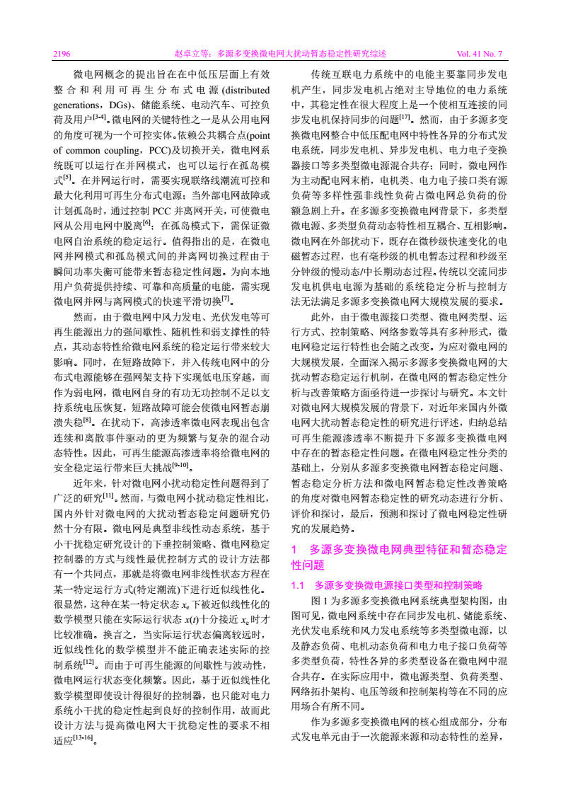 多源多變換微電網(wǎng)大擾動(dòng)暫態(tài)穩(wěn)定性研究綜述