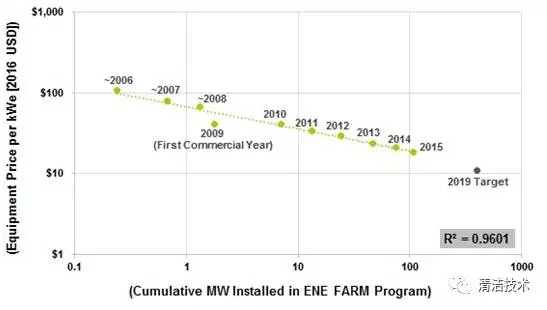 根據(jù)Navigant 研究,隨著產(chǎn)量的提升以及經(jīng)濟規(guī)模的壯大,燃料電池成本呈現(xiàn)逐步下降趨勢。Navigant研究發(fā)現(xiàn)固定式燃料電池的成本下降速度明顯快于風能并且與太陽能成本下降速度保持在同一水平。燃料電池微電網(wǎng)的低成本投入將會獲得更快的成本回收周期。