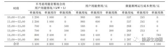 結(jié)論:在用戶用能量相同情況下,無套餐時(shí),用戶用能費(fèi)用合計(jì)8520元,微能源網(wǎng)運(yùn)行成本費(fèi)用合計(jì)3534元;在有套餐時(shí),用戶用能費(fèi)用合計(jì)為8221元,微能源網(wǎng)運(yùn)行成本費(fèi)用合計(jì)3151元。分別減少了299元和383元,提高了各方經(jīng)濟(jì)性。