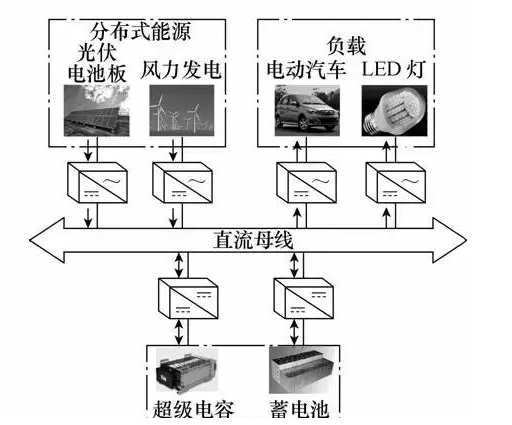 圖1 含混合儲(chǔ)能系統(tǒng)的直流微網(wǎng)典型結(jié)構(gòu)圖
