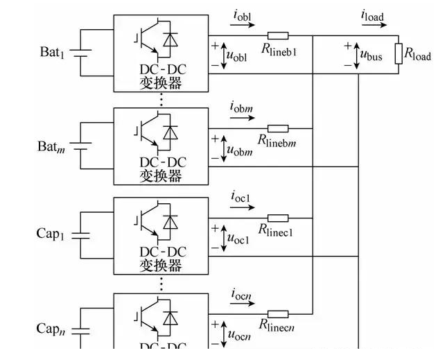 圖2 含m組蓄電池、n組超級(jí)電容的直流微網(wǎng)簡(jiǎn)化模型