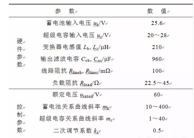 表1 混合儲(chǔ)能系統(tǒng)實(shí)驗(yàn)平臺(tái)參數(shù)