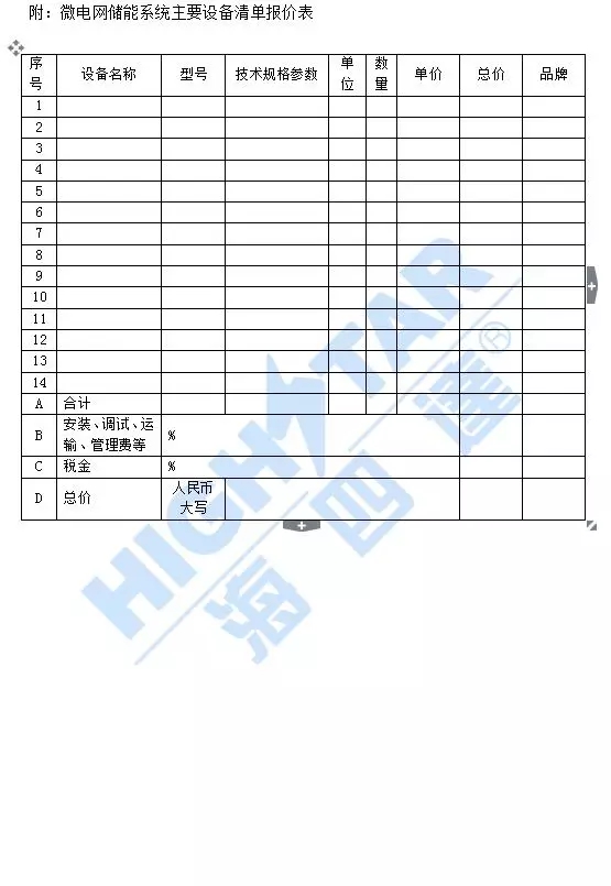 項(xiàng)目范圍:方案設(shè)計(jì)、設(shè)備采購、基礎(chǔ)建設(shè)、設(shè)備安裝、并網(wǎng)調(diào)試等總承包,其中儲(chǔ)能電池由招標(biāo)方自己提供