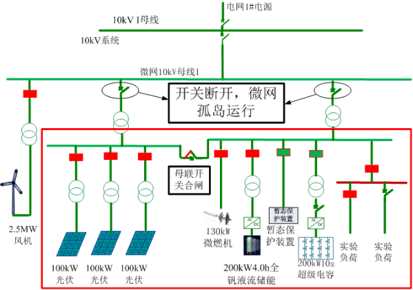 微電網(wǎng)最大的特點(diǎn)是其既可以并入大電網(wǎng),又可以作為獨(dú)立電網(wǎng)運(yùn)行,可以有效提高電網(wǎng)的抗災(zāi)害打擊能力,保證網(wǎng)內(nèi)電力供應(yīng)的安全性。也可有效實(shí)現(xiàn)電力供應(yīng)和消費(fèi)的優(yōu)質(zhì)匹配,優(yōu)化電力資源網(wǎng)內(nèi)分配。能充分有效地解決風(fēng)、光等分布式能源的并網(wǎng)等問題。