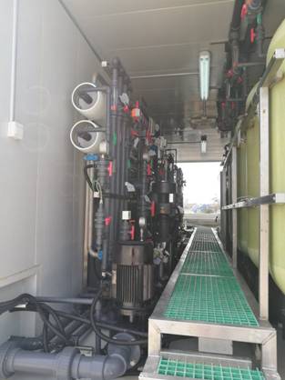 2016年11月20日,成套設(shè)備在豐海公司調(diào)試基地完成試運(yùn)行,起運(yùn)發(fā)往海南,12月8日運(yùn)抵趙述島。12月20日,豐海公司技術(shù)團(tuán)隊(duì)陸續(xù)上島,開(kāi)始安裝調(diào)試。12月31日,設(shè)備成功出水,電導(dǎo)率4.38,水質(zhì)優(yōu)良,可供島上居民日常使用。三級(jí)反滲透產(chǎn)水灌裝成桶裝成品水,進(jìn)行儲(chǔ)存和銷售。