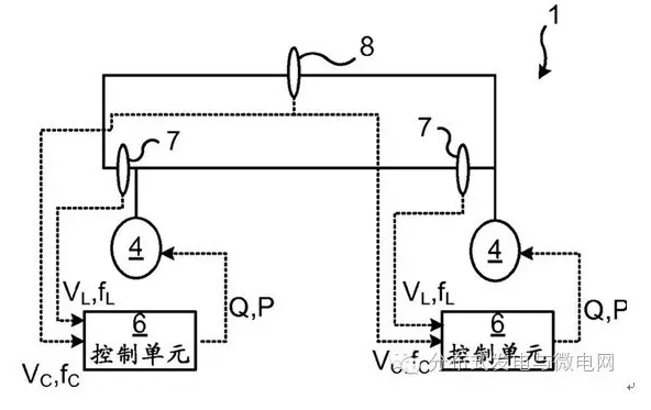 獲得關(guān)于在微電網(wǎng)的與本地點(diǎn)不同的公共點(diǎn)(8)測(cè)量的與公共基準(zhǔn)的電壓和/或頻率偏差的公共偏差信號(hào)(VC、fC),其中公共偏差信號(hào)配置成與通過用于控制使微電網(wǎng)(1)穩(wěn)定的其他能量存儲(chǔ)裝置(4)的其他控制單元獲得的公共偏差信號(hào)相同。